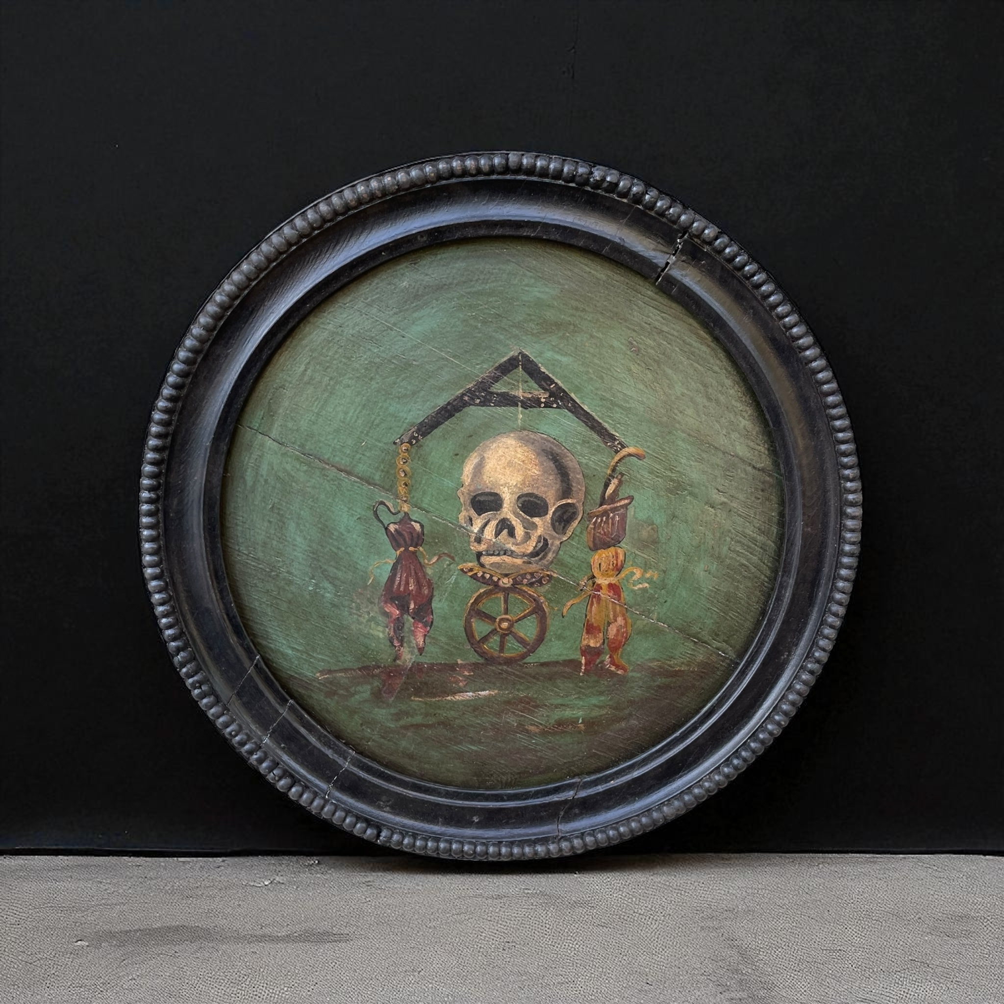 Memento Mori, Tondo, École italienne, huile sur panneau, XVIII eme